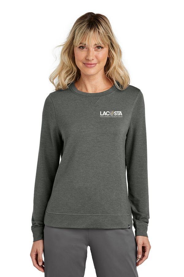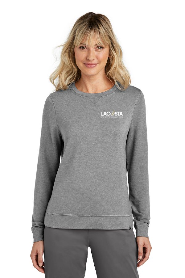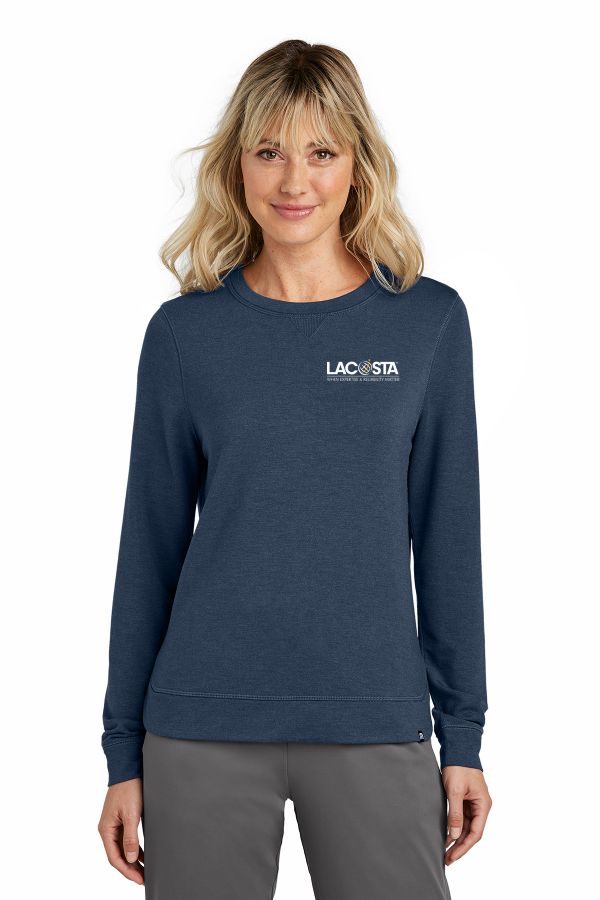 Remember that long weekend feeling any day of the week in this versatile, comfortable crew that can worn at work or while hanging out. 7.2-ounce, 73/22/5 modal/polyester/elastane Easy wash and wear Rib knit notch detail at collar Drop tail hem with scallop detailing TM logo woven label at left hem
